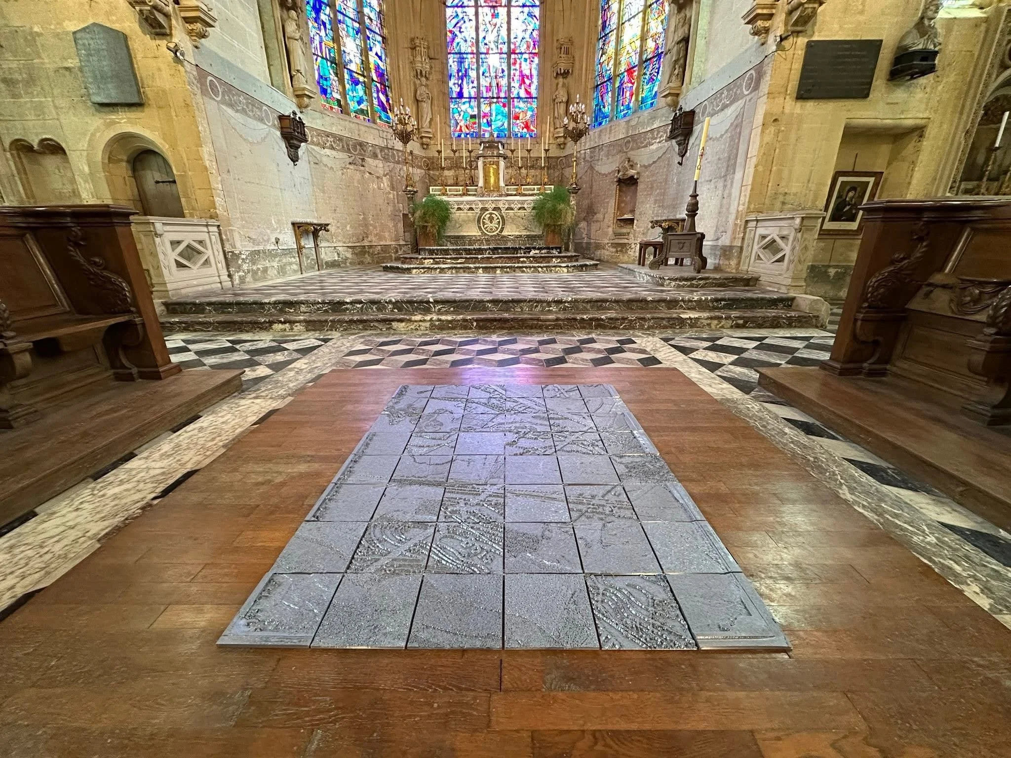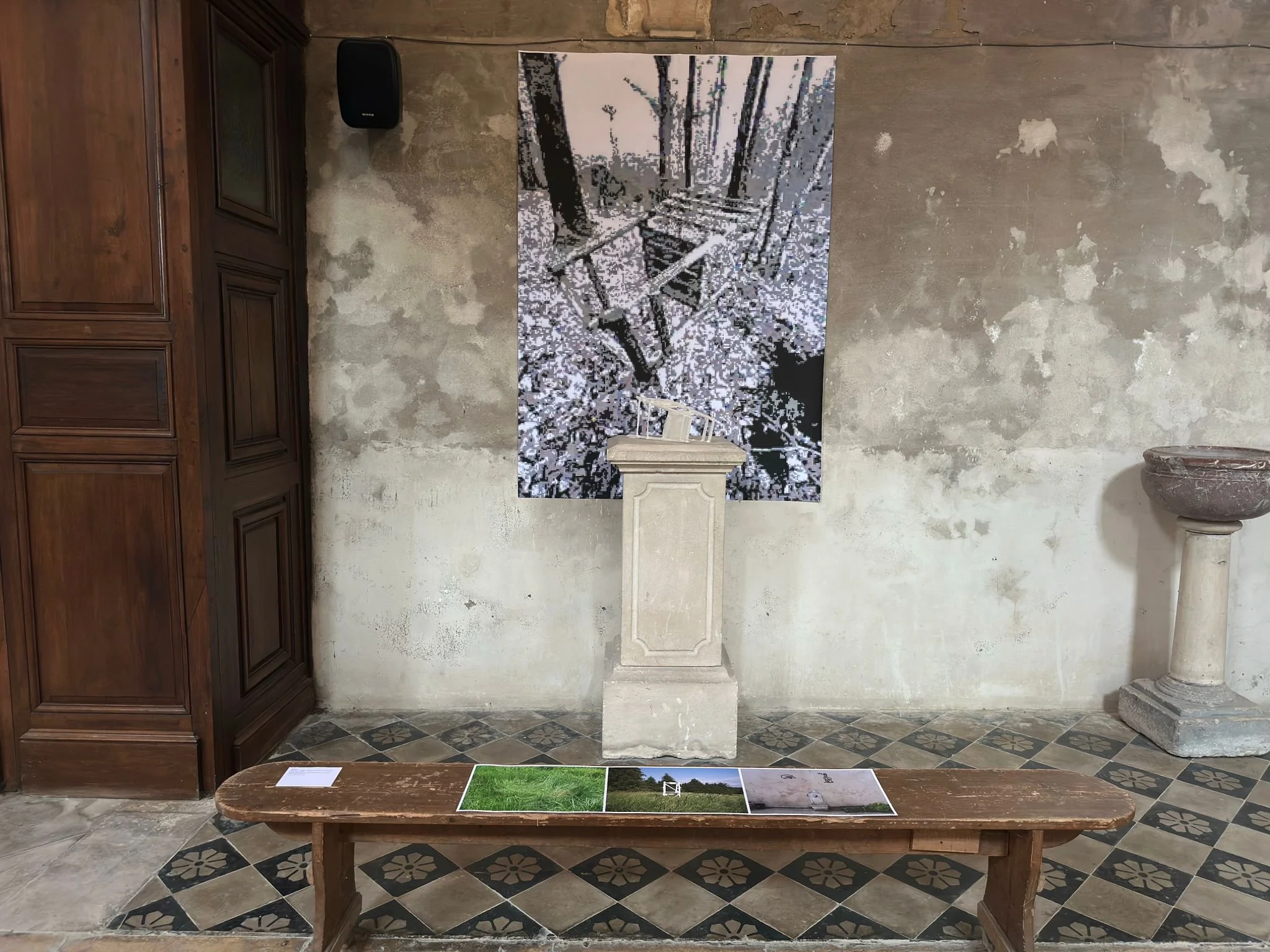 A cross site installation in the village of Grandpre and the Abbay De Chehery.